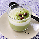 ミルクと抹茶の色のコントラストがさわやかなデザートです。