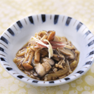 今月は3種のきのこを使った、なめたけ風煮物です。みょうがの香りをアクセントにした、さわやかな味わいです。