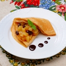 今月は、シャキッとした歯ごたえの煮りんごと濃厚なチョコレートソースを添えた、りんごのガレットです。