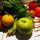 春菊とりんごは、いずれもGI値が低く食後血糖を上げにくくする食品です。また、食物繊維が多く含まれています。このように食物繊維の多い食品をおかずにとり入れると、噛む回数が増えて満足感がアップします。また、調理法にもポイントが。春菊はさっとゆで、りんごは皮をつけておくと、彩りが良くなるだけでなく食べごたえもアップします。