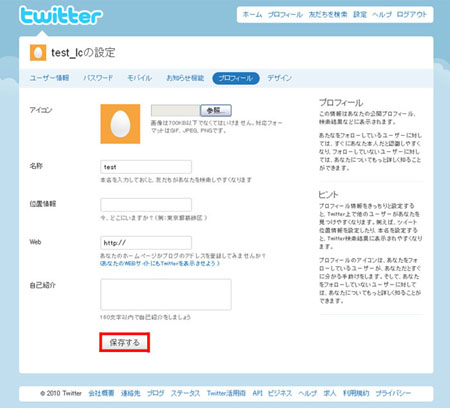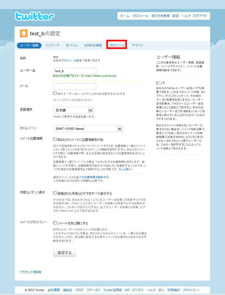 一番上の「設定」をクリックすると、このような画面でプロフィールなどを登録することができます。