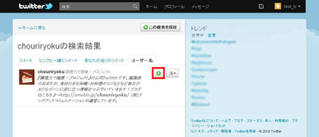「chouriryoku」をクリックすると、そのアカウントのページが出ます。