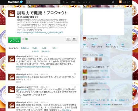 こちらが『調理力で健康!プロジェクト』のツイッター画面です。