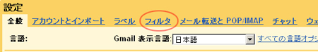 - 2.設定の[フィルタ]をクリック