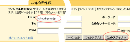 - 4.Fromに「chouriryoku.jp」を入力次のステップ
