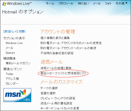 Hotmail・msnmail 受信許可変更手順