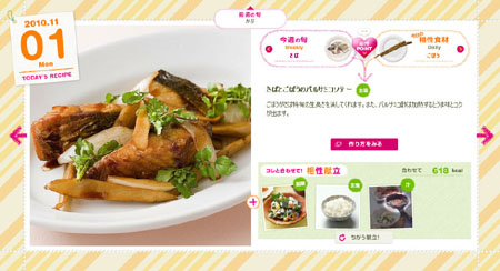 「今週の旬」、または「今日の相性食材」をクリックすると、