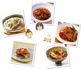 雑誌「生活改善レシピ」で腕をふるい続けてくださっている献立の魔術師。しっかりとした味付けの料理も楽しめるよう、献立の中でメリハリをつけながら、低カロリーなのにボリュームもコクもあるお料理を作り出してくださっています。保存レシピや蒸し料理の本も大評判です。