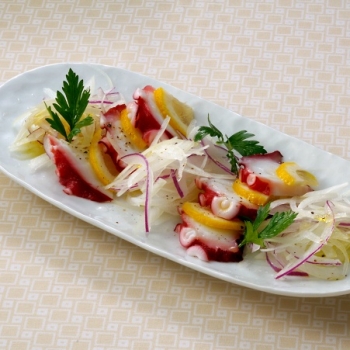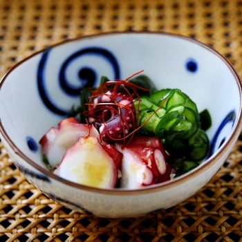 たこの歯ごたえときゅうりのパリパリとした食感が軽快なコンビ。粗くおろした大根としょうがを加えて、さらにさっぱり仕上げました。