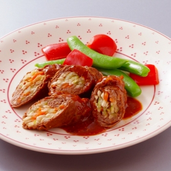 手作りソースには、トマトのリコピン、赤ワインのポリフェノール、赤だしみそのイソフラボンと抗酸化物質がせいぞろい。ごぼうやれんこんも抗酸化物質が豊富です。ご飯に合う味付けもうれしい点です。