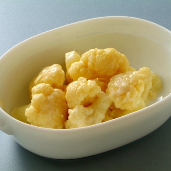 - カリフラワーは小房に分けて熱湯でゆで、ざるに上げて水けをきって冷ます。