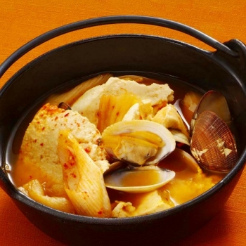 - フライパンにあさりとにんにくを入れ、ワインを加えてふたをし、火にかける。あさりの口が開いたら、トマトとわかめを加えてひと煮し、仕上げにこしょうをふる。