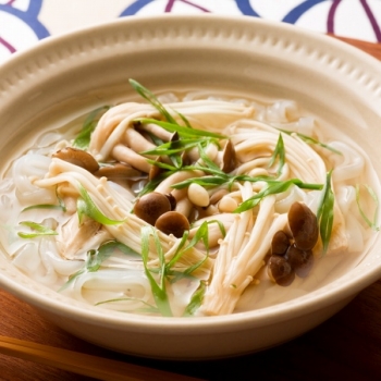 - フォーは熱湯でゆでて器に盛り、2のささ身も一口大に裂いてのせる。