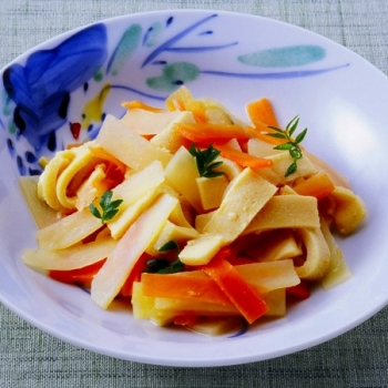 保存食の代表格、高野豆腐の食感が楽しめ、鶏肉と合わせてボリュームアップ。優しい味わいのおかずです。