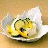とうがんの涼しげな透明感、トマトの赤が清涼感あふれる1品。とうがんの淡白な素材にトマトのうま味がしみて相性バツグンです。冷製にしていただいてもおいしい。 - ズッキーニとパプリカのサラダ