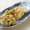 白・黄色・緑と色のコントラストもさわやかなサラダです。作り置きして、毎食少しずつ食べられるところも嬉しいですね。 - いんげんとゆで大豆のかき揚げ