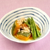 大豆、鶏肉、根菜類がたっぷり。スープから放たれるローズマリーの風味がとってもさわやかです。 - 南瓜とじゃこのみそ煮