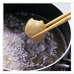 - 高温 - 落とした衣が油の表面で散る